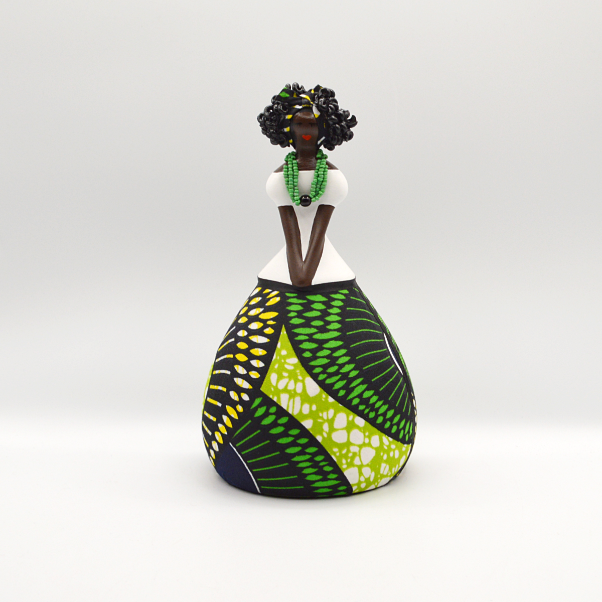 Hand-painted African doll with capulana fabric appliqué, 100% Portuguese-made.