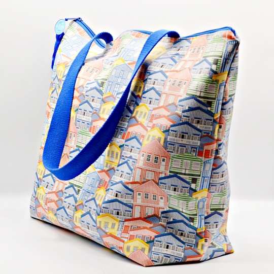 Handmade bag with images of traditional Aveiro houses from the Costa Nova.