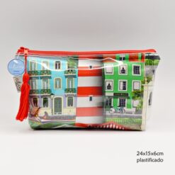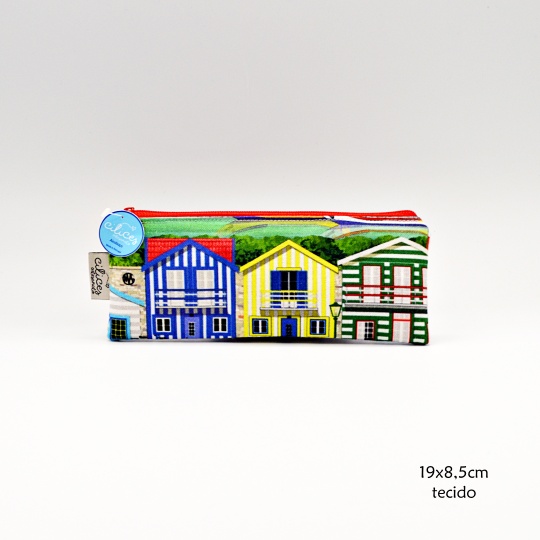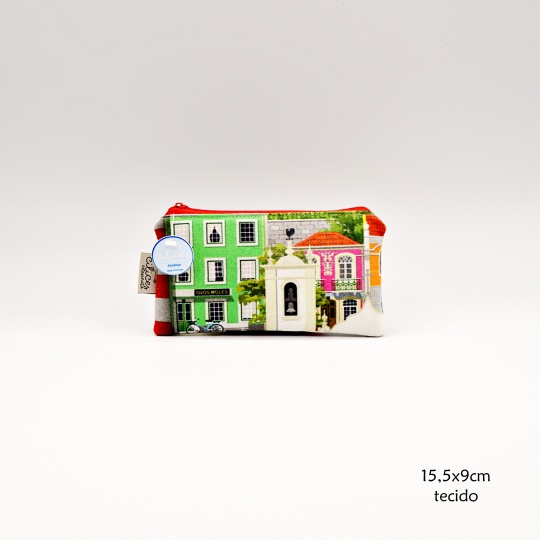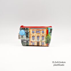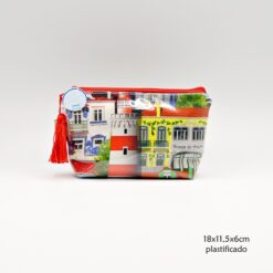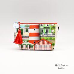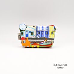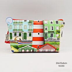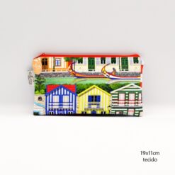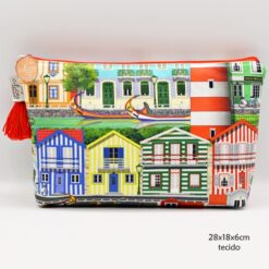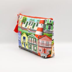 Handmade purse with images of Aveiro, the facades of the houses, its canals with moliceiros, the houses of Costa Nova and monuments such as the Church of Vera Cruz, Farol da Barra and the Train Station.