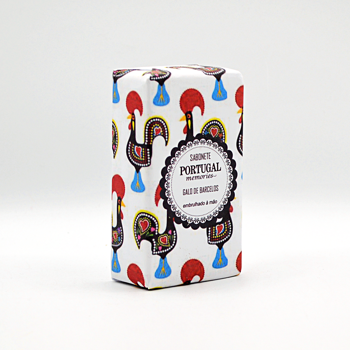 150g moisturizing soap with a very mild scent, packaged with images of the Rooster of Barcelos, officially one of the symbols of Portugal.
