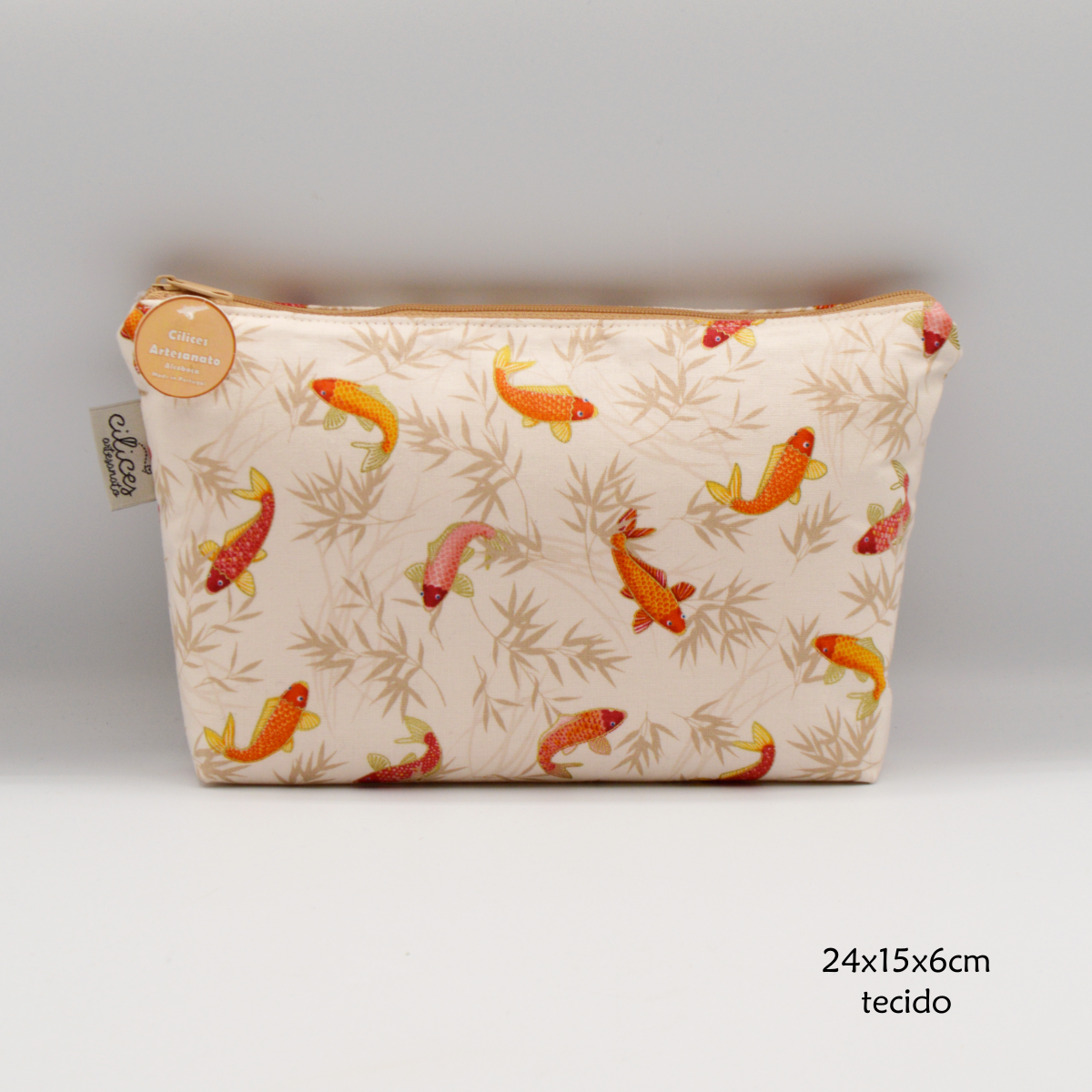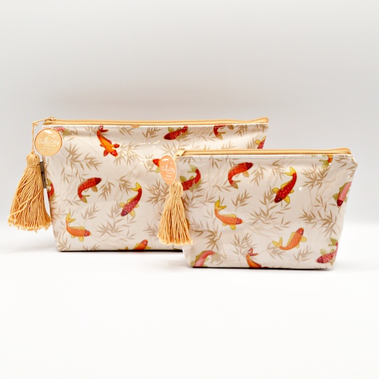 Handmade purse with carp images.