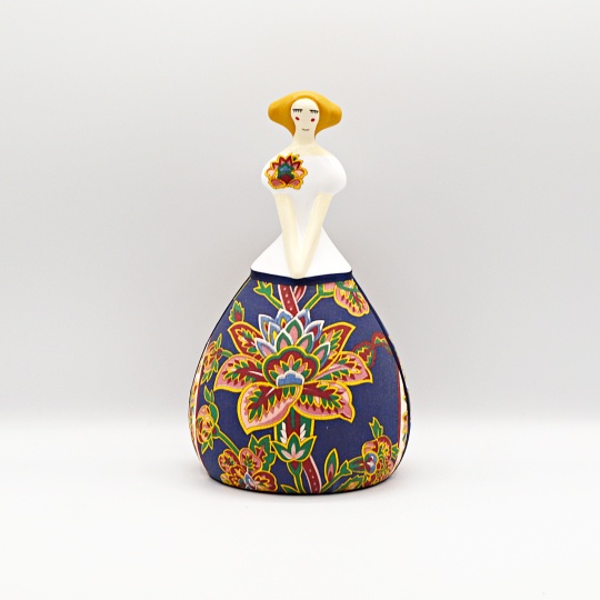 Hand-painted doll with Alcobaça chita fabric appliqué, 100% Portuguese-made.