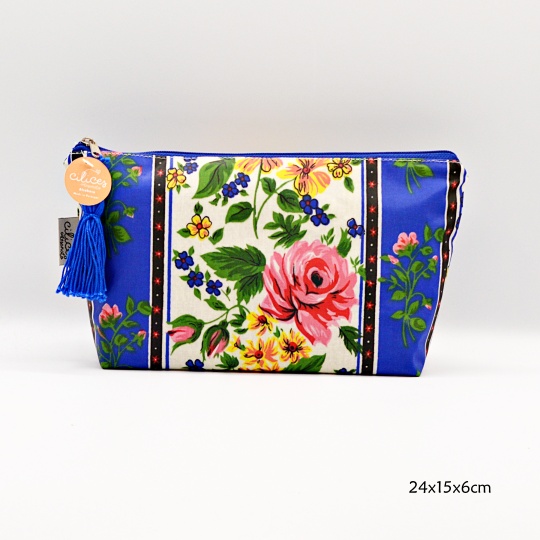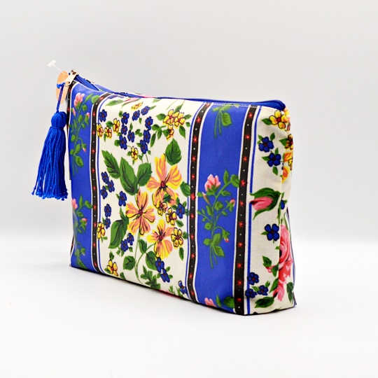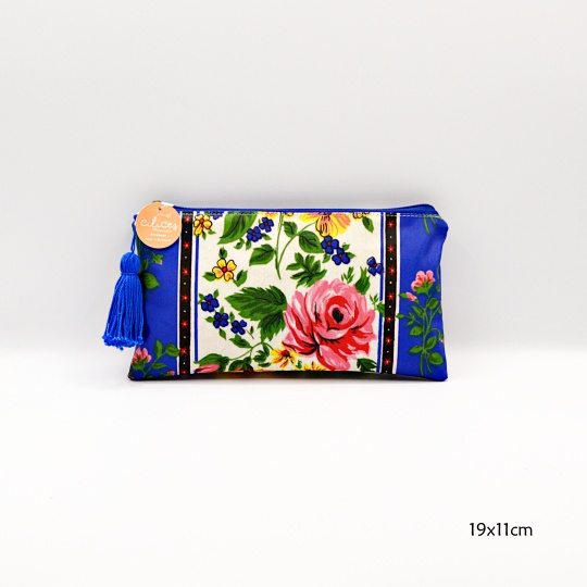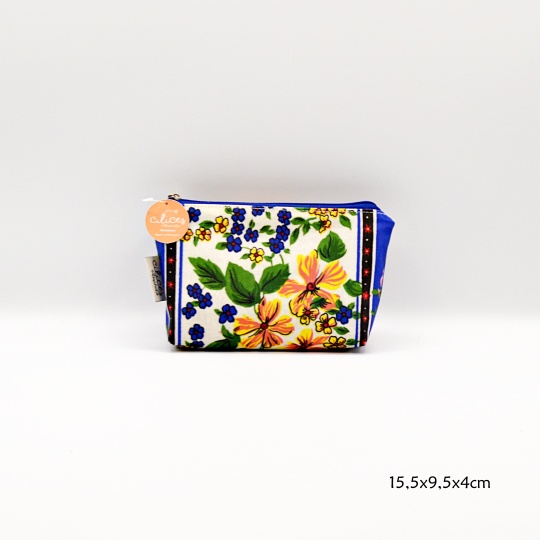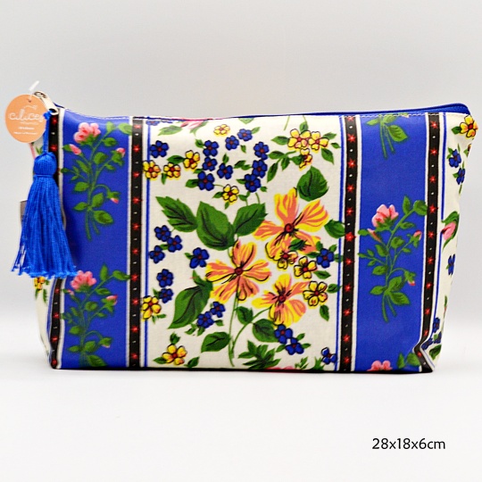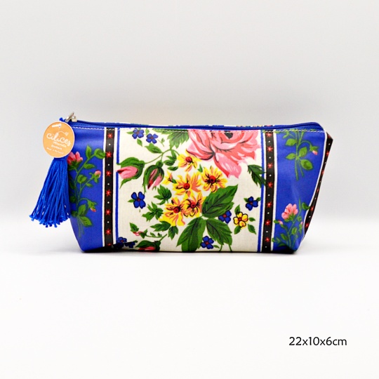Handmade purse in plasticized fabric with a blue Alcobaça Chita pattern.