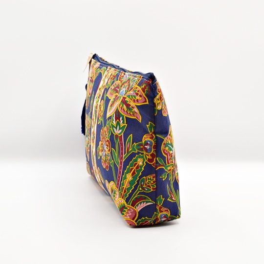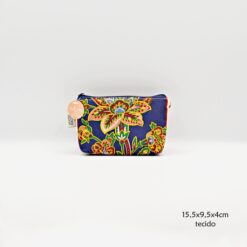 Handmade purse with blue Shangri-La Chita, 100% cotton fabric.