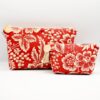 Available in cotton fabric and plasticized cotton fabric on top. Purses that are laminated on top are waterproof on the inside.