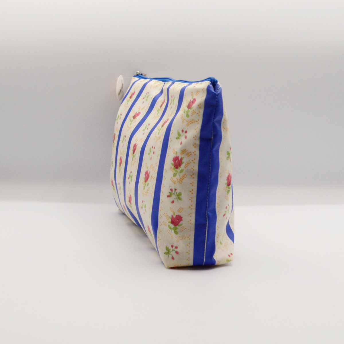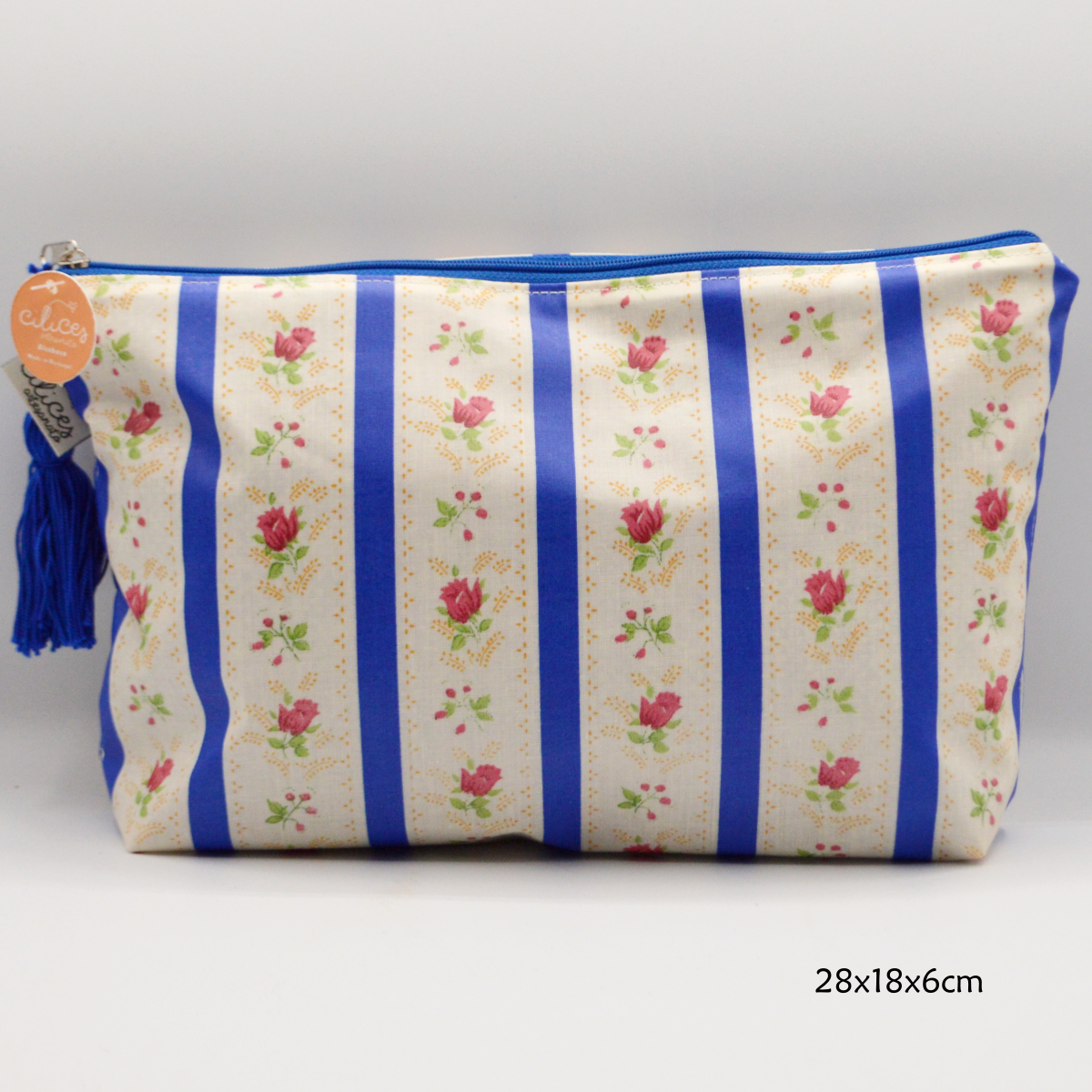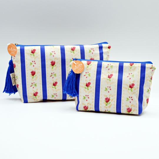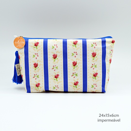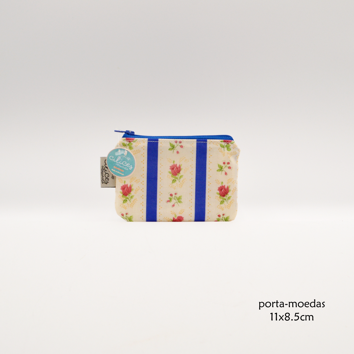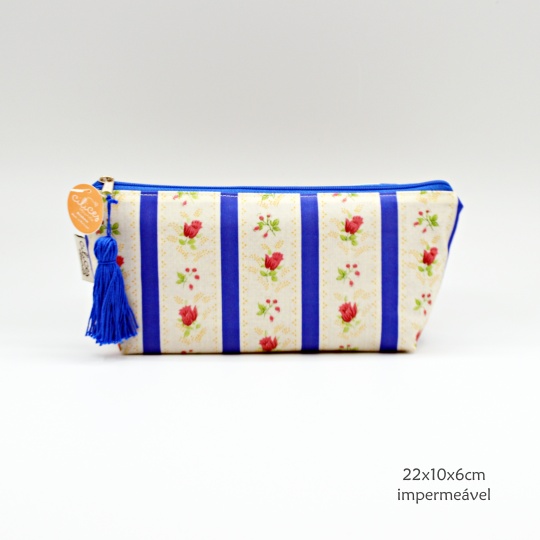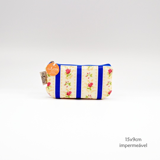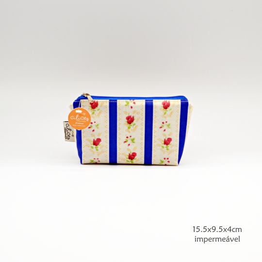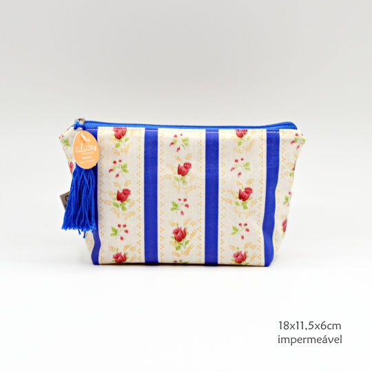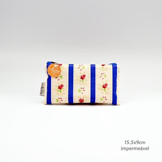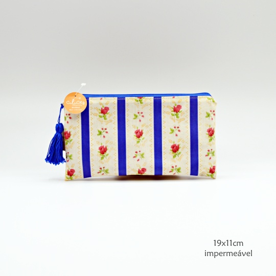 Handmade purse in plasticized fabric with a blue Alcobaça Pombalino Chita pattern.