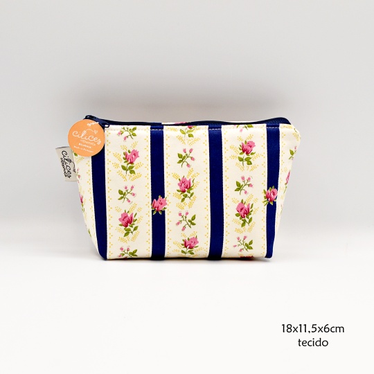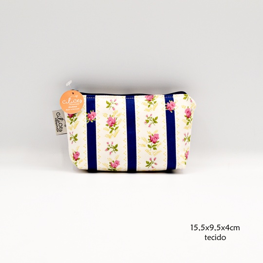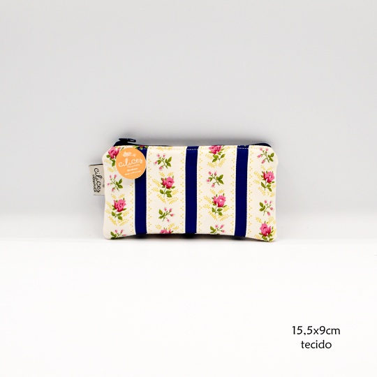 Handmade purse with dark blue Pombalino Chita, 50% cotton and 50% satin fabric.