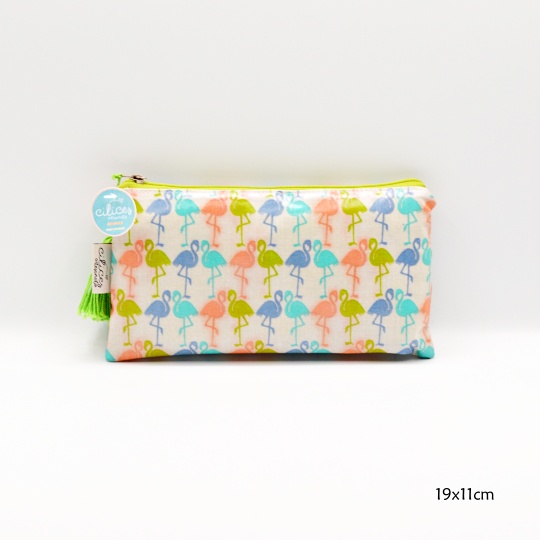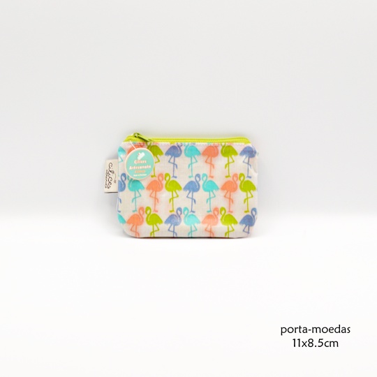 Purse with images of flamingos.