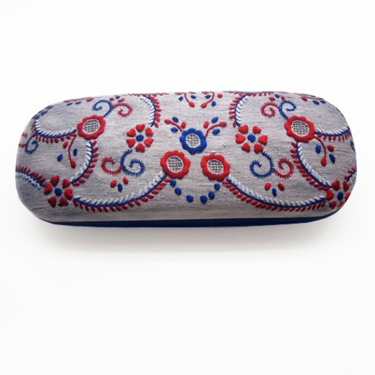 Metal glasses case covered in microfiber with an embroidered print of Viana do Castelo.