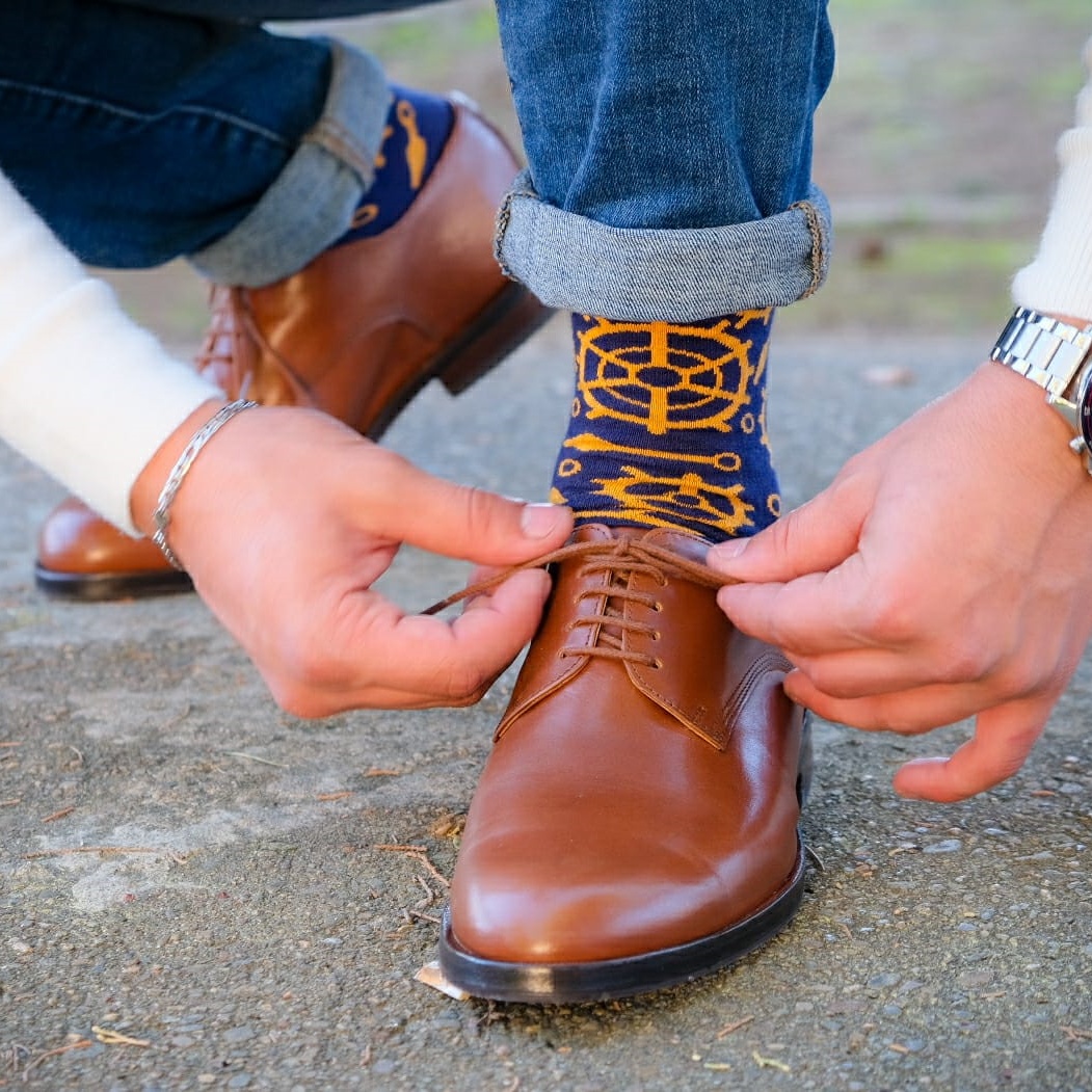 Socks with a pattern inspired by the engineering pieces that, with their precision, allow us to measure time accurately. This collection is the result of a challenge launched by the Clock Museum.