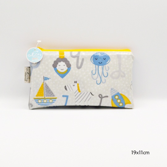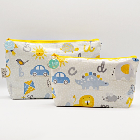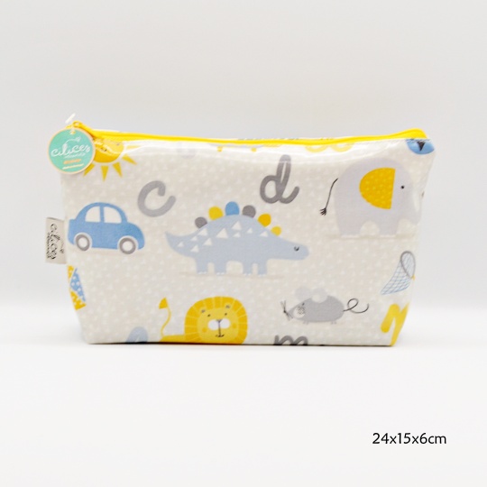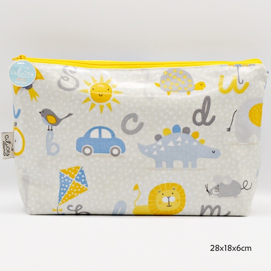 Bag with various images and letters.