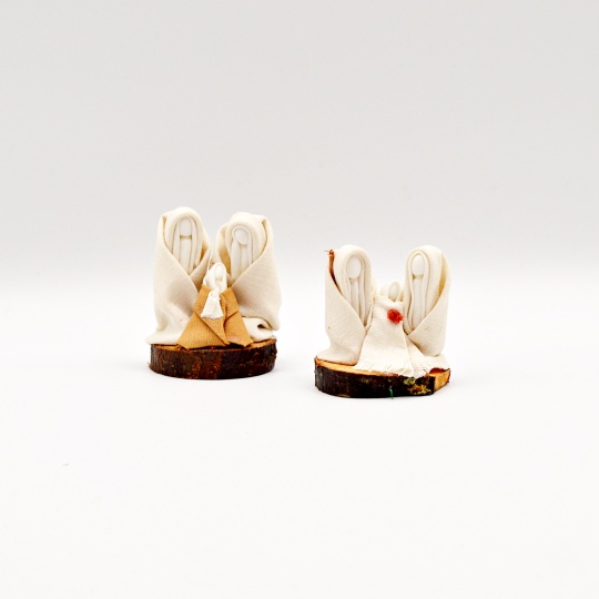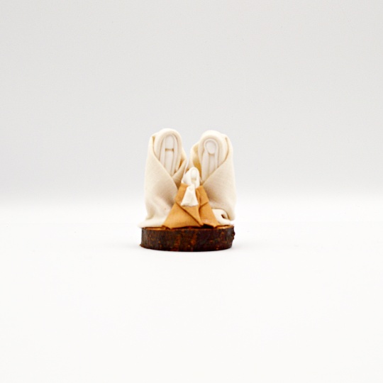 Linen nativity scene with wooden base, handmade and 100% Portuguese.