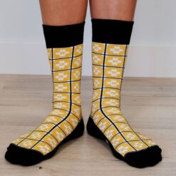 Meias com padrão inspirado no abutre preto, procurando dar a conhecer e sensibilizar para a fantástica fauna que habita o nosso País (Portugal e resto da Península Ibérica) e alertando para o feito desta espécie ser protegida e em vias de extinção. Estas meias são feitas em Portugal e não têm costura para um maior conforto. Composição: 80% Algo