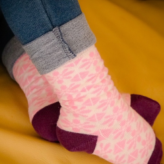Meias com padrão inspirado na herança arquitetónica, o Azulejo Português. Estas meias são feitas em Portugal e não têm costura para um maior conforto. Composição: 80% Algodão Penteado; 17 % Poliamida; 3% Elastano