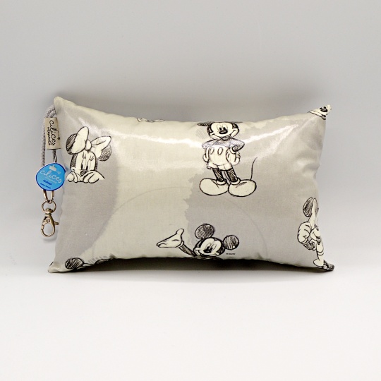 Beach cushion in laminated fabric with images of Mickey and Minnie.