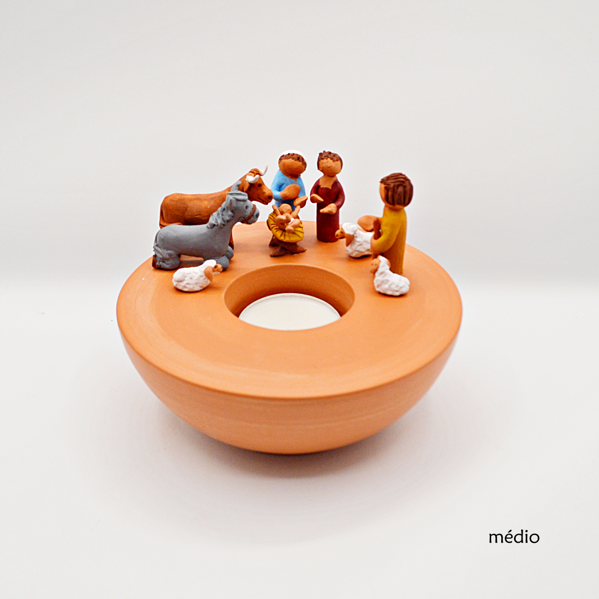Nativity scene in clay candle holder, handmade and 100% Portuguese.