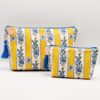 Chita de Alcobaça is a printed cotton fabric that originated in India. It was brought to Portugal in the 15th century and became very popular in the following centuries in decorative pieces and clothing all over Europe. The reason for the name “Chitas de Alcobaça” is still a mystery today. Chita is characterized by its colourful patterns, wide or thin stripes and floral, animal, human or cornucopia motifs.