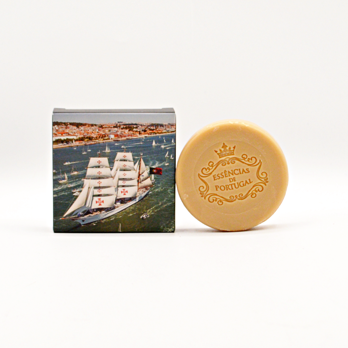 50g aromatic soap, enriched with glycerin and pure olive oil, in a box with an image of the Sagres ship and jasmine scent.