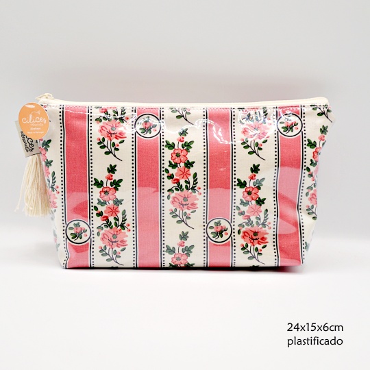 Disponível em tecido de algodão e em tecido de algodão plastificado por cima. As bolsas plastificadas por cima são impermeáveis no interior.