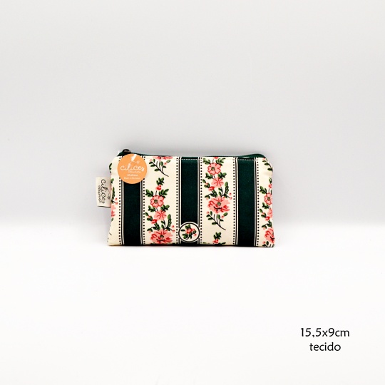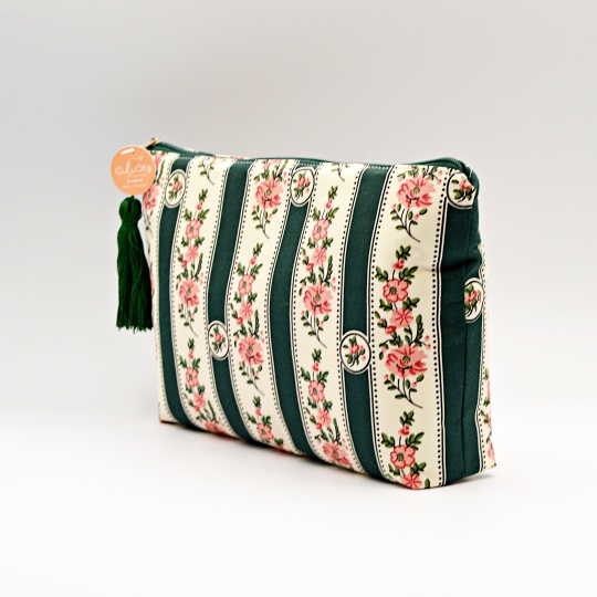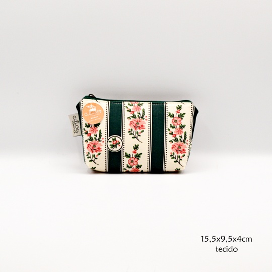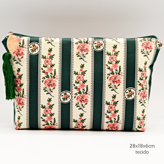 Bolsa feita à mão com a chita Belmonte verde, tecido 100% de algodão.