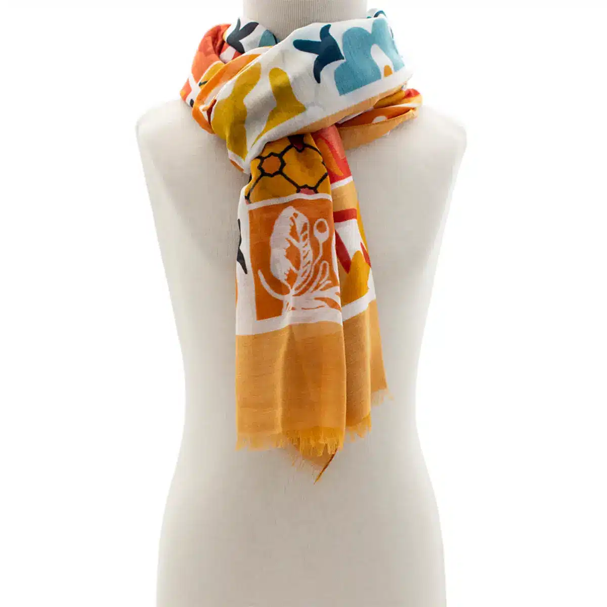 Echarpe em algodão com motivos inspirados no azulejo português.