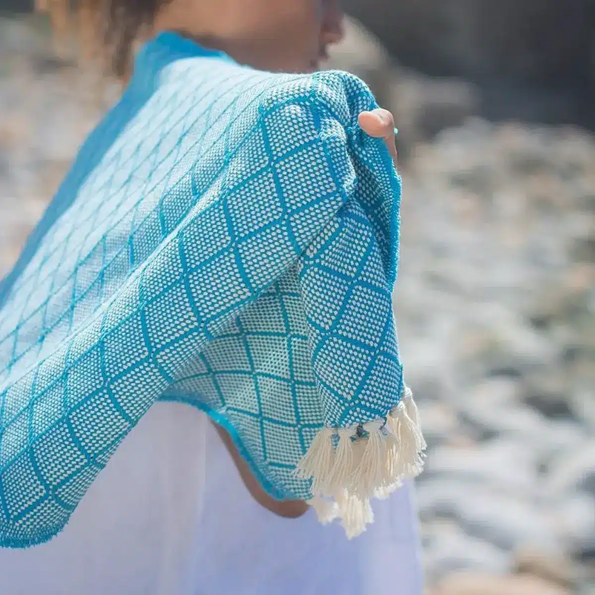 Écharpe/Cachecol em 100% algodão, tecida em teares mecânicos tradicionais e inteiramente produzida em Portugal, ideal para os dias mais frios.