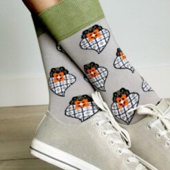 Meias com padrão inspirado num dos ícones da Cultura Popular Portuguesa, o Coração de Viana e na herança arquitetónica, o Azulejo Português Estas meias são feitas em Portugal e não têm costura para um maior conforto. Composição: 80% Algodão Penteado; 17 % Poliamida; 3% Elastano