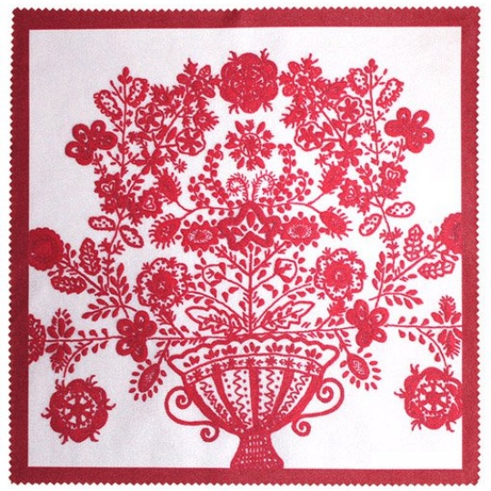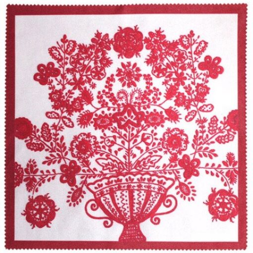 Pano de microfibra com impressão do padrão de um Bordado de Guimarães, ideal para limpeza de óculos, ecrãs, tablets e superfícies espelhadas.