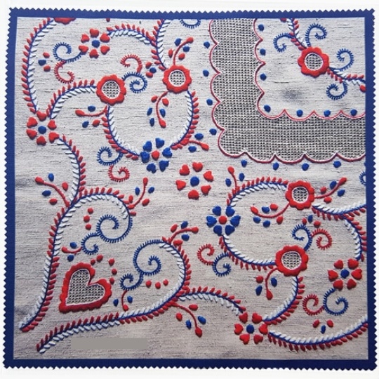 Pano de microfibra com impressão de um bordado de Viana do Castelo, ideal para limpeza de óculos, ecrãs, tablets e superfícies espelhadas.