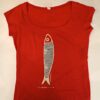 T-shirt 100% algodão, de senhora, com Santo António em Chita de Alcobaça aplicada à mão.